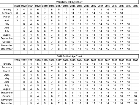 THIRD: Where the ROW and COLUMN meet is your player's League Age for 2026.